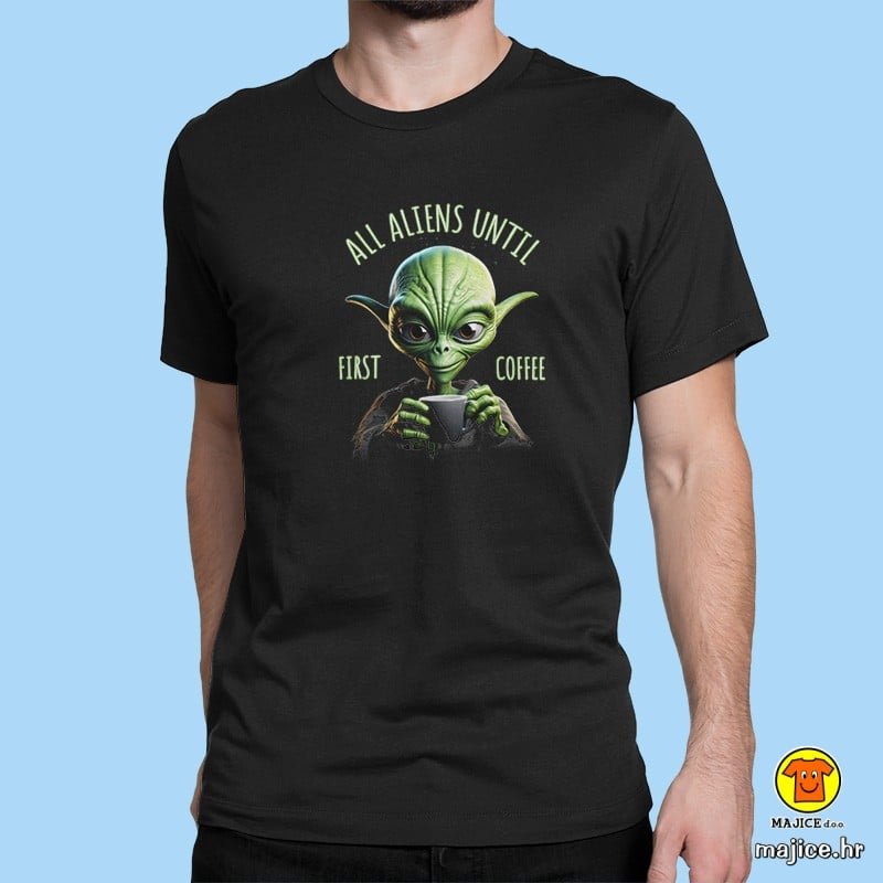 ALL ALIENS UNTIL FIRST COFFEE | majica s natpisom