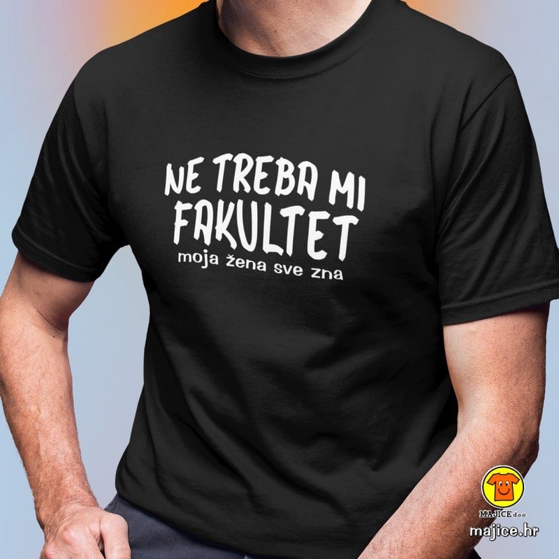 NE TREBA MI FAKULTET MOJA ŽENA SVE ZNA | majica s natpisom