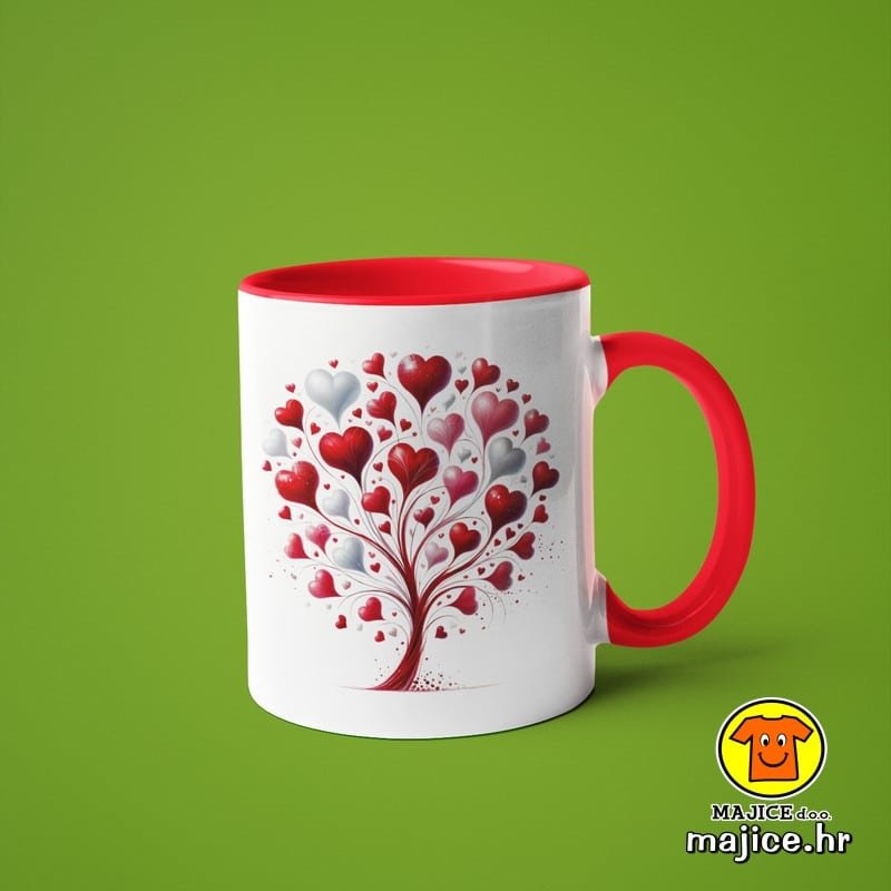 Drška,obrub ili unutrašnjost šalice može biti u drugoj boji a ta boja je obično u skladu s bojama motiva na šalici.