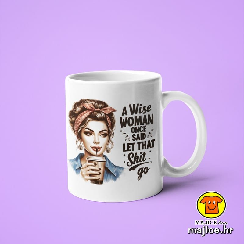 A WISE WOMAN ONCE SAID LET THAT SHIT GO v1 | šalica s natpisom
